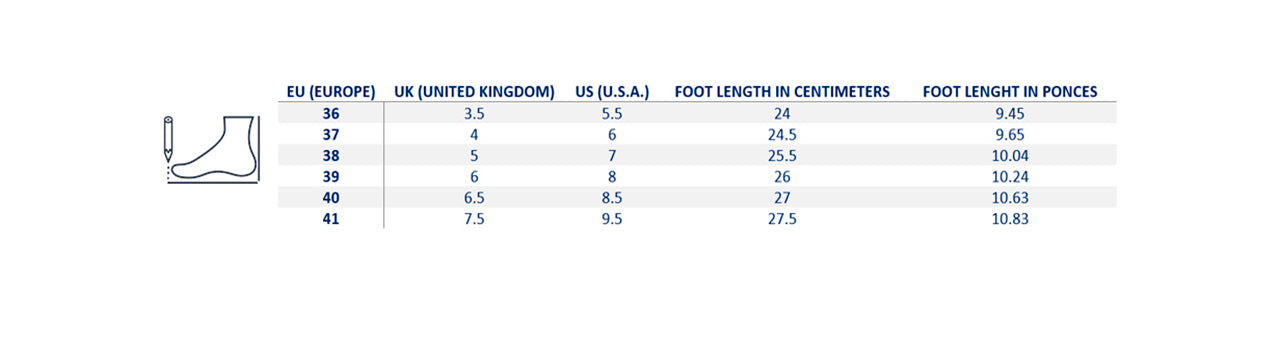 The following centimeter and inch measurements correspond to real foot sizes. Please refer to them carefully to find your perfect fit. If you have any questions, don’t hesitate to contact us — we’re always happy to help.